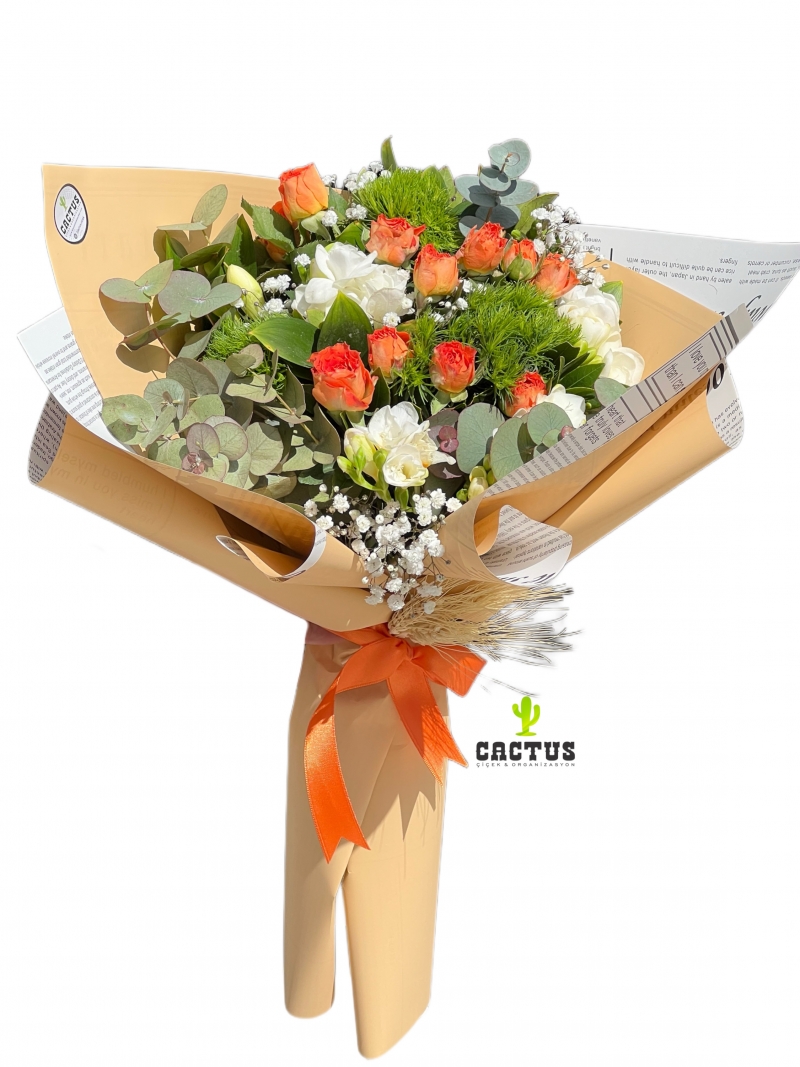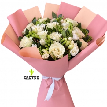 Beyaz Gül ve Frezya Buketi